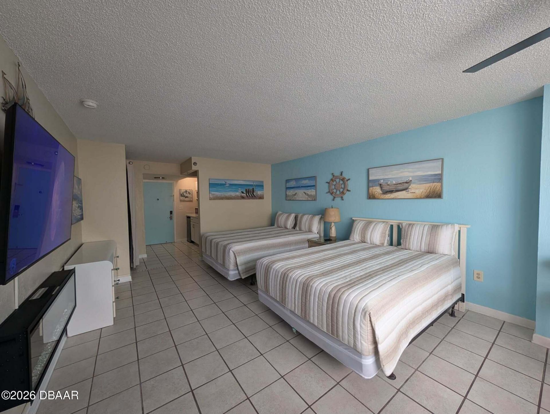 Don't miss this opportunity to own a fully furnished beachfront studio that serves as both a personal retreat and an income-producing property--and one of the few buildings offering a low monthly condo maintenance fee, helping maximize your return. Zoned for flexible short-term rentals, this unit is ideal for nightly bookings through platforms like Airbnb, VRBO, or private reservations--offering multiple revenue streams.Inside, this unit features two queen beds and a convenient kitchenette equipped with a refrigerator and microwave. The unit is completely turnkey, including linens, towels, and a TV, making it ready for immediate occupancy or rental. Step onto your private balcony and enjoy stunning ocean views, perfect for morning coffee or evening relaxation. Residents and guests enjoy resort-style amenities at Fountain Beach Resort, including an oceanfront pool, jacuzzi, fitness center, and on-site bar with live music. Located directly on Daytona Beach--known as the World's Most Famous Beach--this area draws visitors year-round with high-demand events such as NASCAR races at Daytona International Speedway, Bike Week, Biketoberfest, Spring Break, and national cheerleading and dance competitions--helping keep rental calendars full and income potential strong.Whether you're seeking a vacation getaway, an investment property, or the best of both, this beachfront studio delivers.